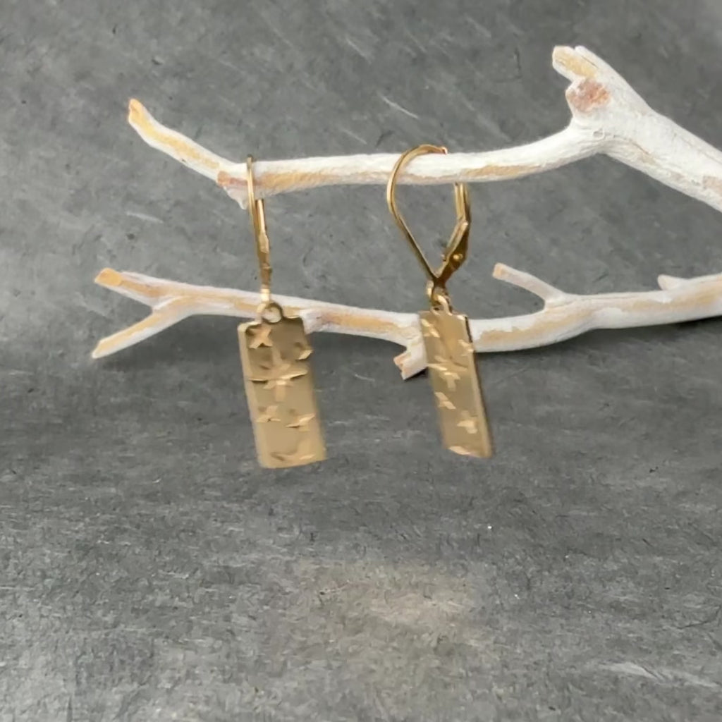 These dainty celestial earrings feature delicate stars, which have been meticulously hand stamped onto durable 14K gold filled metal. Made by Burnish with love and care, these earrings will last for many years.